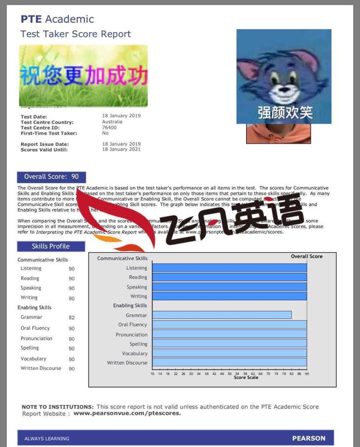我一共考了两次PTE,第一次听力76其他三项90,间隔一周后再考四项90。