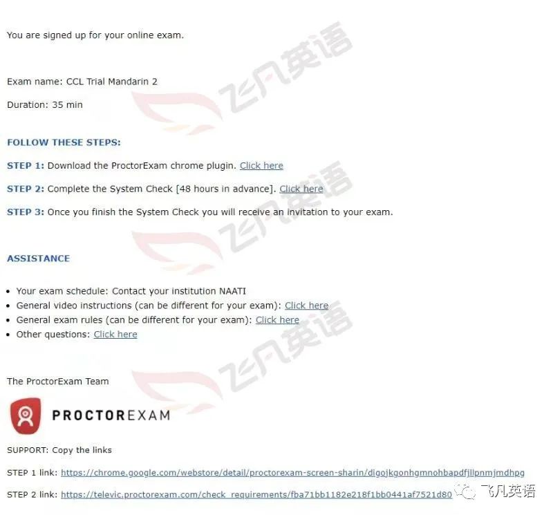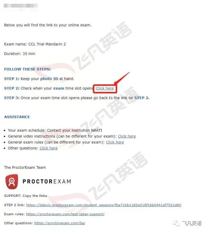 • 通过System check以后,考生会收到考试邮件,考试当天在STEP 2里面有考试的链接,到时候直接点进去就能开始考试了。